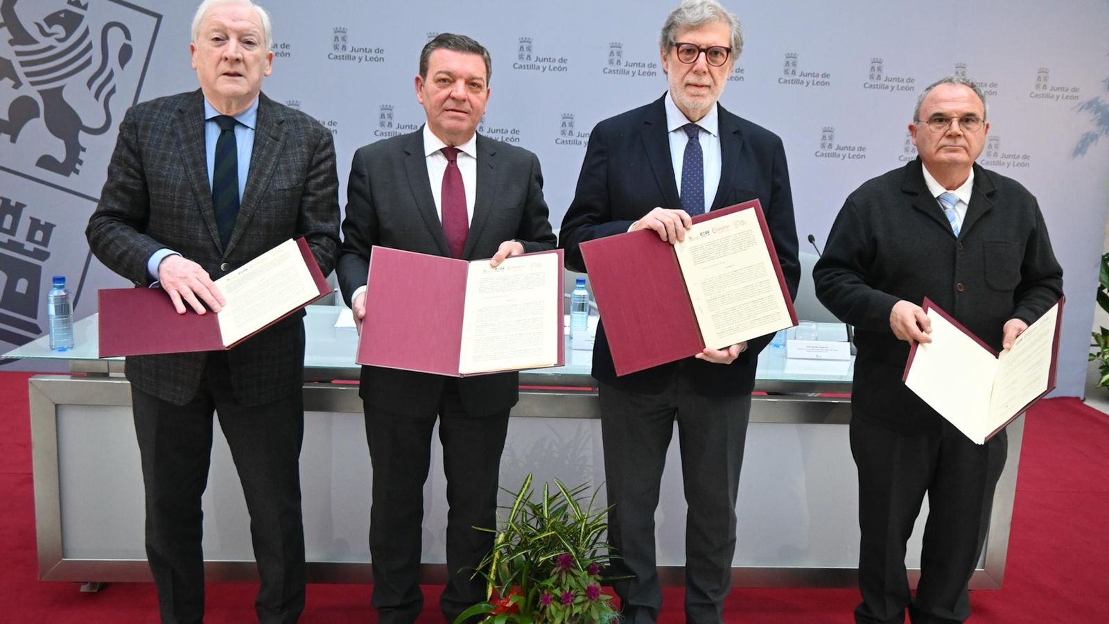 El convenio, que se firmaba a cuatro bandas, contempla una subvención total de 300.000 euros repartidos entre tres organizaciones: 140.000 para la CEOE Castilla y León, 140.000 para el Consejo de Cámaras de Comercio de Castilla y León, y 20.000 para la Confederación Internacional de Casas Regionales.