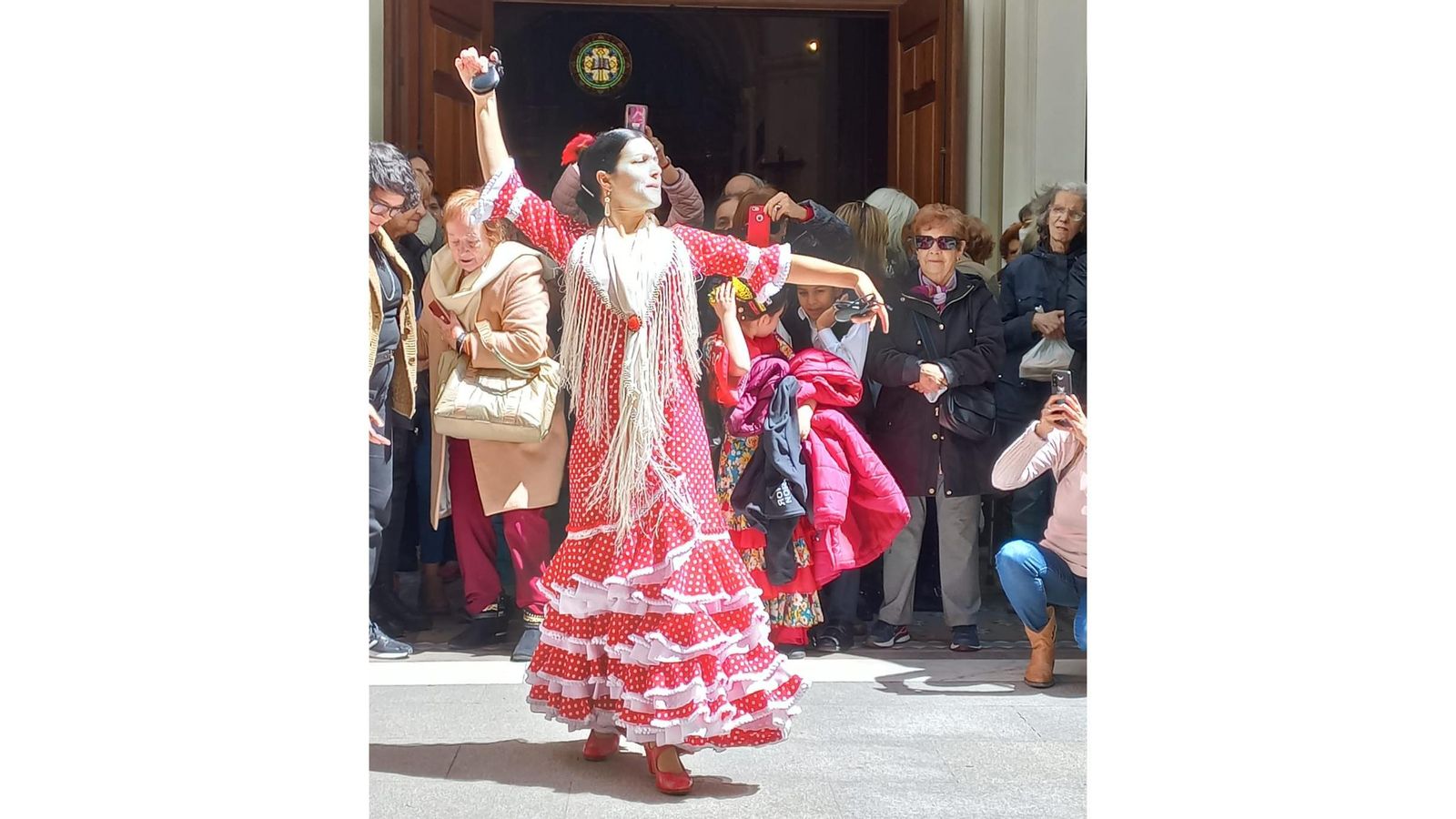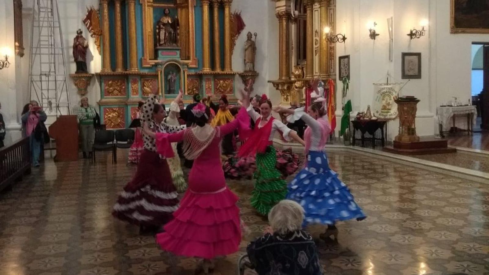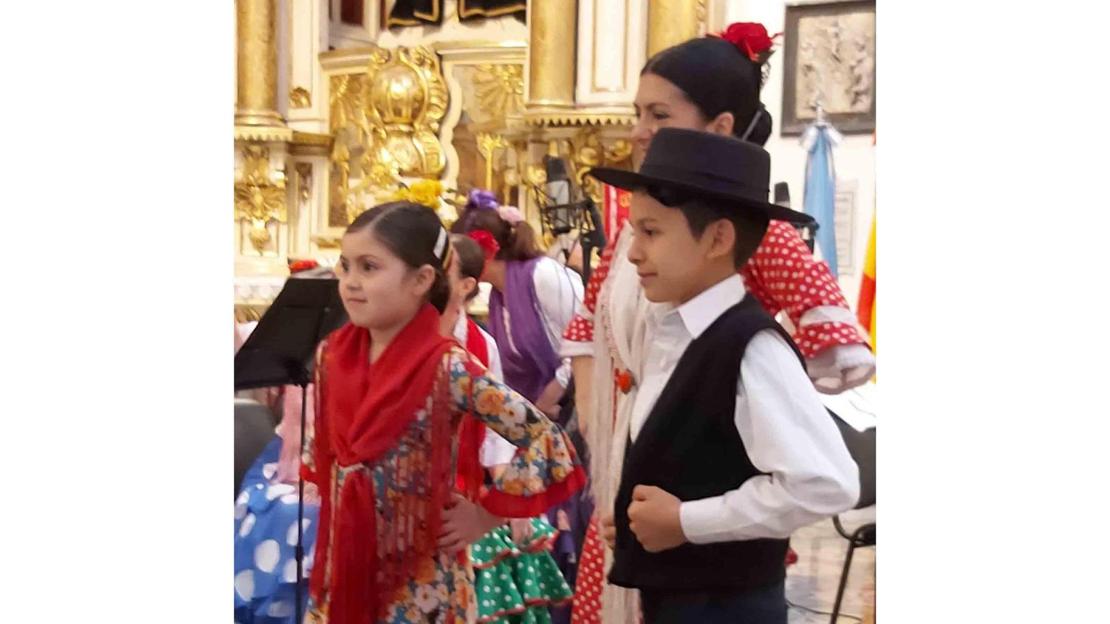 El coro dio la bienvenida a los presentes cantando “Qué alegría”, sentimiento que perduró durante toda la ceremonia cuando se cantaban las canciones hasta el fin de la misa cuando el grupo de baile del Centro Andalucía “Luna Rociera”, dirigido por Yanina Martínez, bailaron por sevillanas en el templo y luego a la salida a las puertas del mismo.