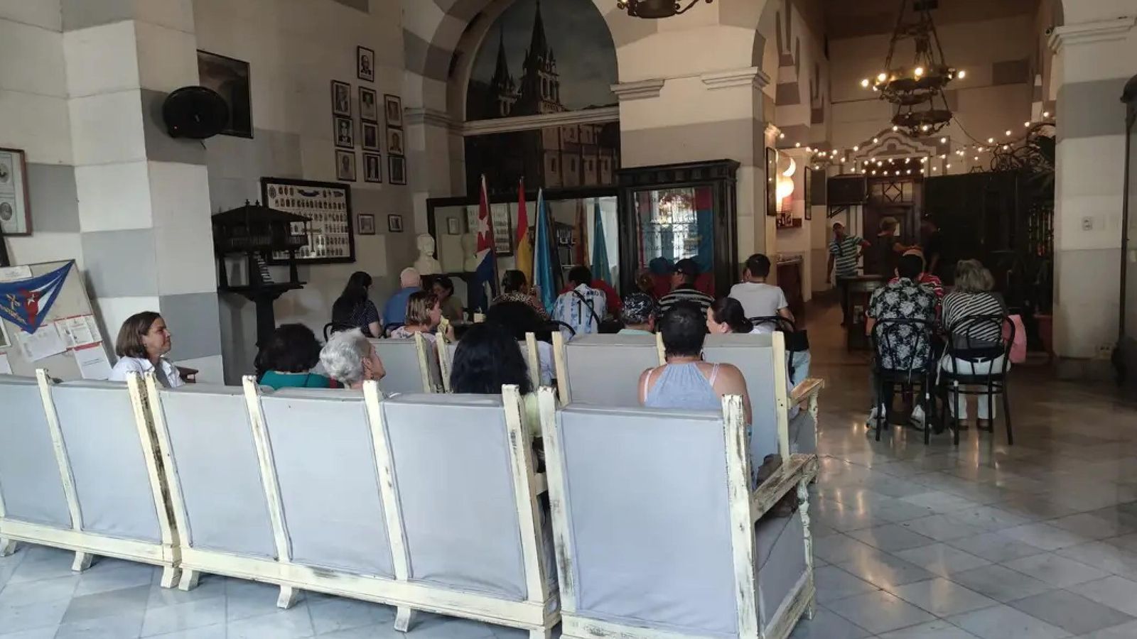 El Consejo de Residentes Españoles de Cuba, presidido por María Antonia Rabanillo Dámera, el secretario José Antonio Cerra Arrime, los vocales suplentes Felicidad Amat Zabaleta, Pedro Ventura González junto a Ángela Alemañy Aguilera, Teresita García Fernández, orientan a todos los que asisten a sus despachos efectuados en la mayoría de las asociaciones no gubernamentales españolas que aún existen en la República de Cuba.