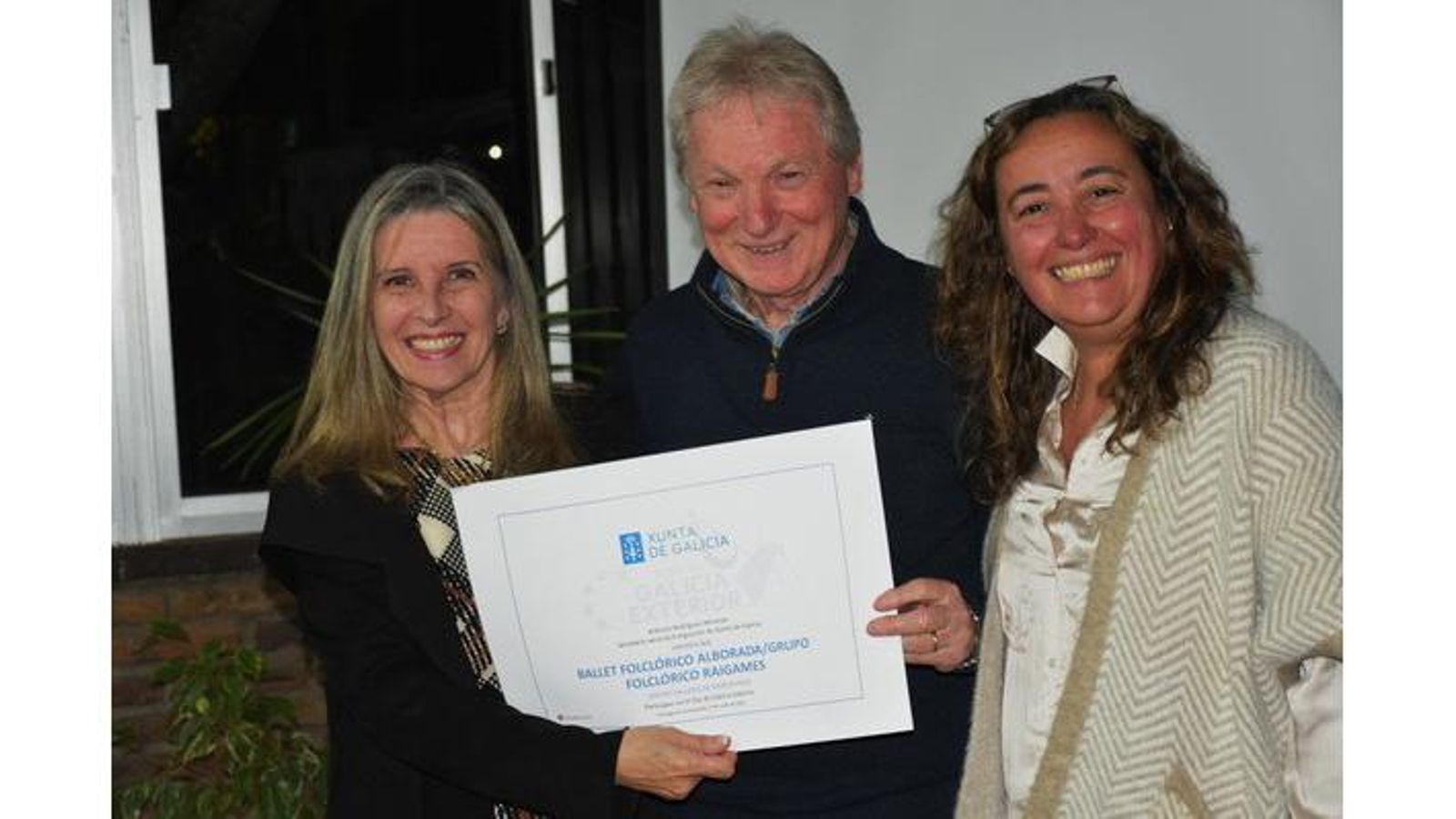 La delegada de la Xunta en Uruguay, Elvira Domínguez, hizo entrega de los diplomas de asistencia a las participantes del Centro Gallego de Montevideo que representaron a la entidad en el VI Día de la Galicia Exterior, celebrado en Santiago de Compostela el pasado 9 de julio. Elvira Domínguez Alonso estuvo acompañada del presidente de la entidad, Ramón Lorenzo.