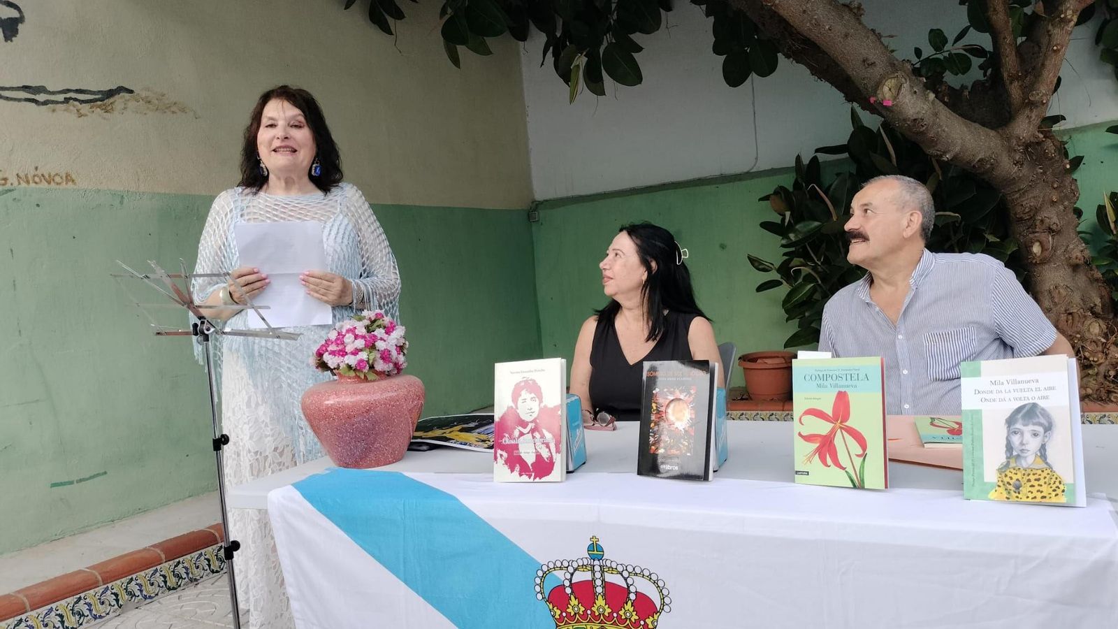 Por su parte, la vocal de cultura, Mila Villanueva leyó junta a Simeón Couto y Manuel Fortes poemas de su libro 'Compostela'.