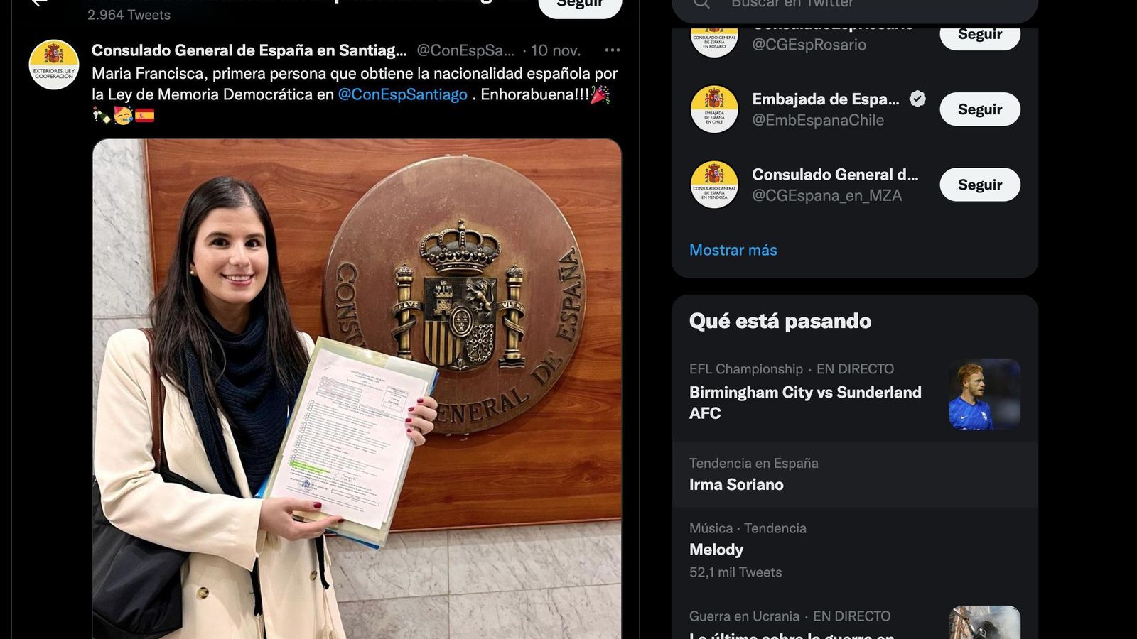 La situación, a poco más de dos semanas desde la publicación del nuevo texto en el BOE, es imposible explicarla con precisión, dado que es cualquier cosa, menos lineal y uniforme, ya que hay Consulados que no solo ya han atendido a las primeras peticiones, si no que, incluso, ya han publicado fotos de las orgullosas y felices primeras personas que han obtenido la nacionalidad española, como sería el caso del Consulado de España en Santiago de Chile, mientras que en otros ni siquiera se ha abierto el turno de concesión de citas, ni se sabe cuándo lo harán, y en otros sí han empezado a dar citas que, en casos como el de, por ejemplo, Buenos Aires, ya llegan a los meses de junio, julio o agosto de 2023.