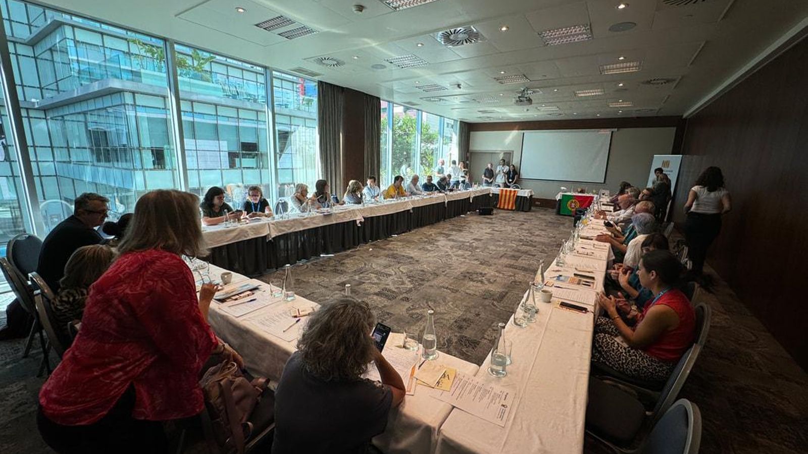 Asistieron unas 20 entidades de toda Europa que representaban a los casales catalanes de muchos países (Portugal, Francia, Suiza, España, Italia, Luxemburgo, Reino Unido, Dinamarca, Bélgica, Alemania, Noruega), así como representantes de la FIEC (Federació Internacional d'Entitats Catalanes), del Consejo de la Cataluña Exterior y de otras entidades como Òmnium y la Fundación Auba. El Gobierno catalán estuvo representado por el nuevo director general de la Cataluña Exterior, Oriol Lázaro, en su primera actividad en su nuevo puesto; por la jefa de Gabinete del consejero de Unión Europea y Acción Exterior, Ana Maria González Montes; por Joaquim Vila i Queralt, jefe del Área de las comunidades catalanas en el exterior de la Dirección General de la Cataluña Exterior; y por el delegado del Gobierno catalán en Portugal, Rui Reis.