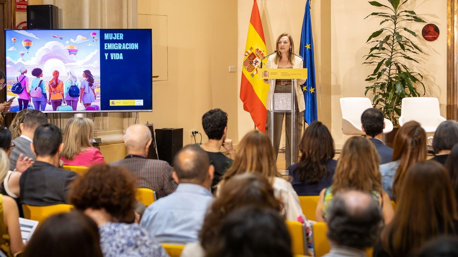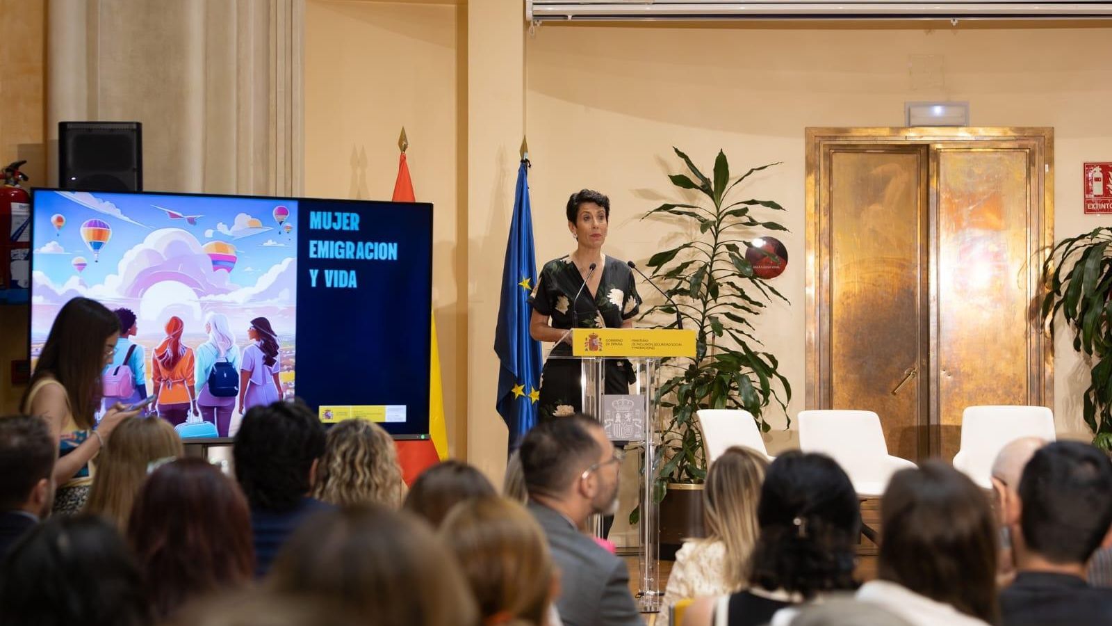 Durante el evento, organizado por La Dirección General de Ciudadanía Española en el Exterior y Políticas de Retorno del Ministerio de Inclusión, que encabeza Elena Bernardo, - encargada de dar la bienvenida a las participantes - y en la que participó la ministra, Elma Saiz, y la Secretaria de Estado de Migraciones, Pilar Cancela, varias mujeres residentes en el exterior y retornadas compartieron sus experiencias y dificultades tanto en sus países de residencia como al regresar a España.