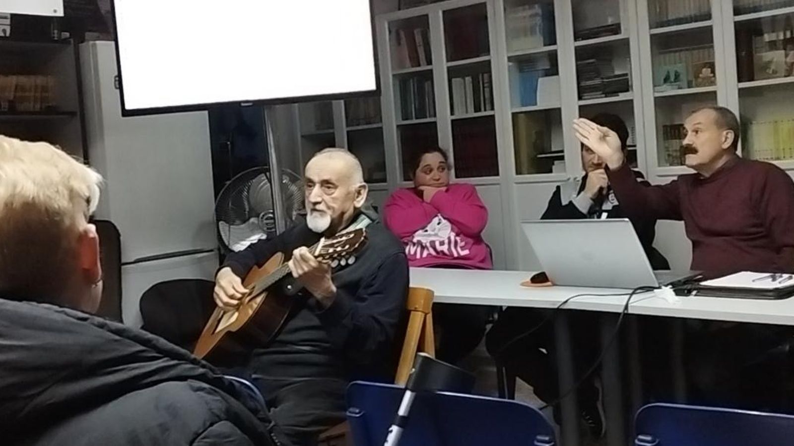 Antes de comenzar esta importantísima reunión el asociado y excelente compositor y músico Julio V. González interpretó de Fito Páez, la antológica canción "Vengo a entregar mi corazón" mientras se iban exponiendo algunas imágenes de la tragedia de la riada en el pueblo de Massanassa donde radica este honorable Centro Gallego valenciano.