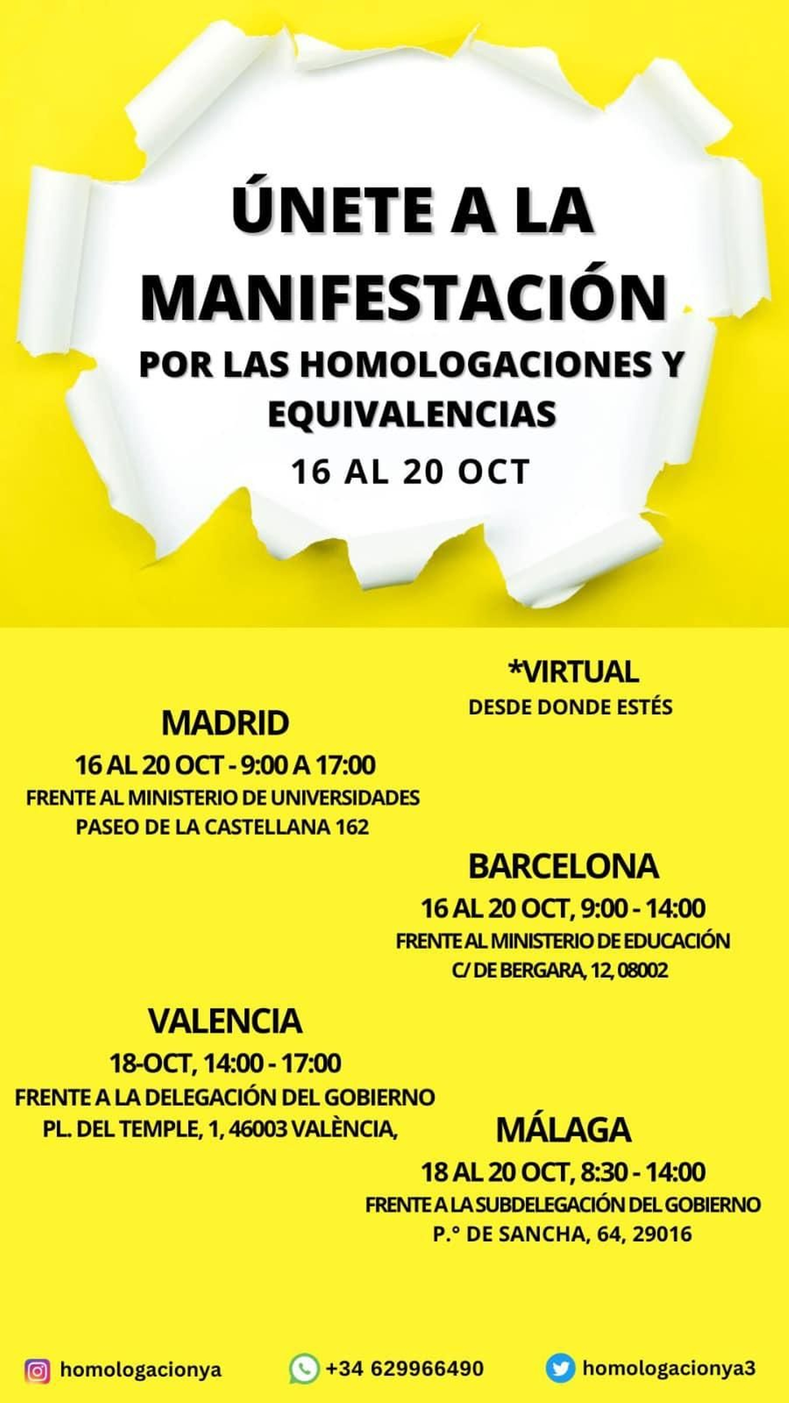 El movimiento Manifestaciones por la Homologacón Justa se manifesta en Coruña, Madrid, Valencia, Barcelona y Málaga