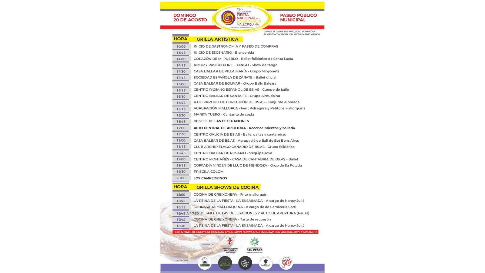 En síntesis, pese al frío reinante, la fiesta terminó el lunes con sol en el cielo y la calidez de la multitudinaria celebración que, a no dudar, ha honrado a argentinos y españoles por igual. Y especialmente, a la ciudad de San Pedro y a la Agrupación Mallorca San Pedro, que producto de un enorme esfuerzo y trabajo constante, con amor por las raíces y también por Argentina, ha logrado tamaño éxito.