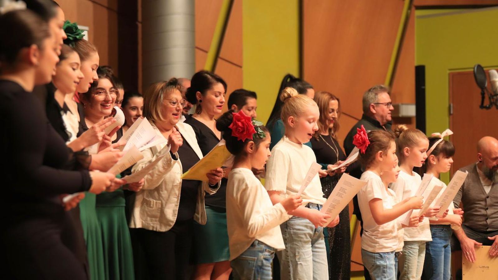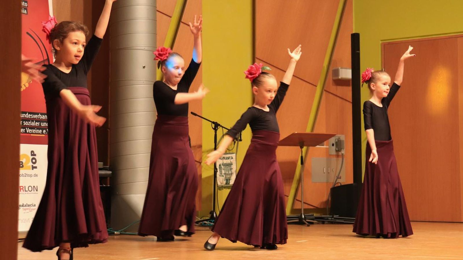 En el primer bloque, el Trio Rumbajam & Friends invitaron al canto de villancicos, para luego continuar el Baile Infantil de niños de entre 4 y 9 años. El grupo de Cheerleader del club de fútbol americano “Cologne Crocodiles” asombró con su destreza física en cada movimiento.
