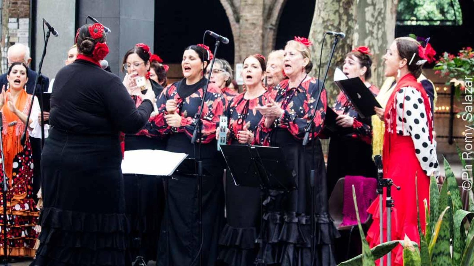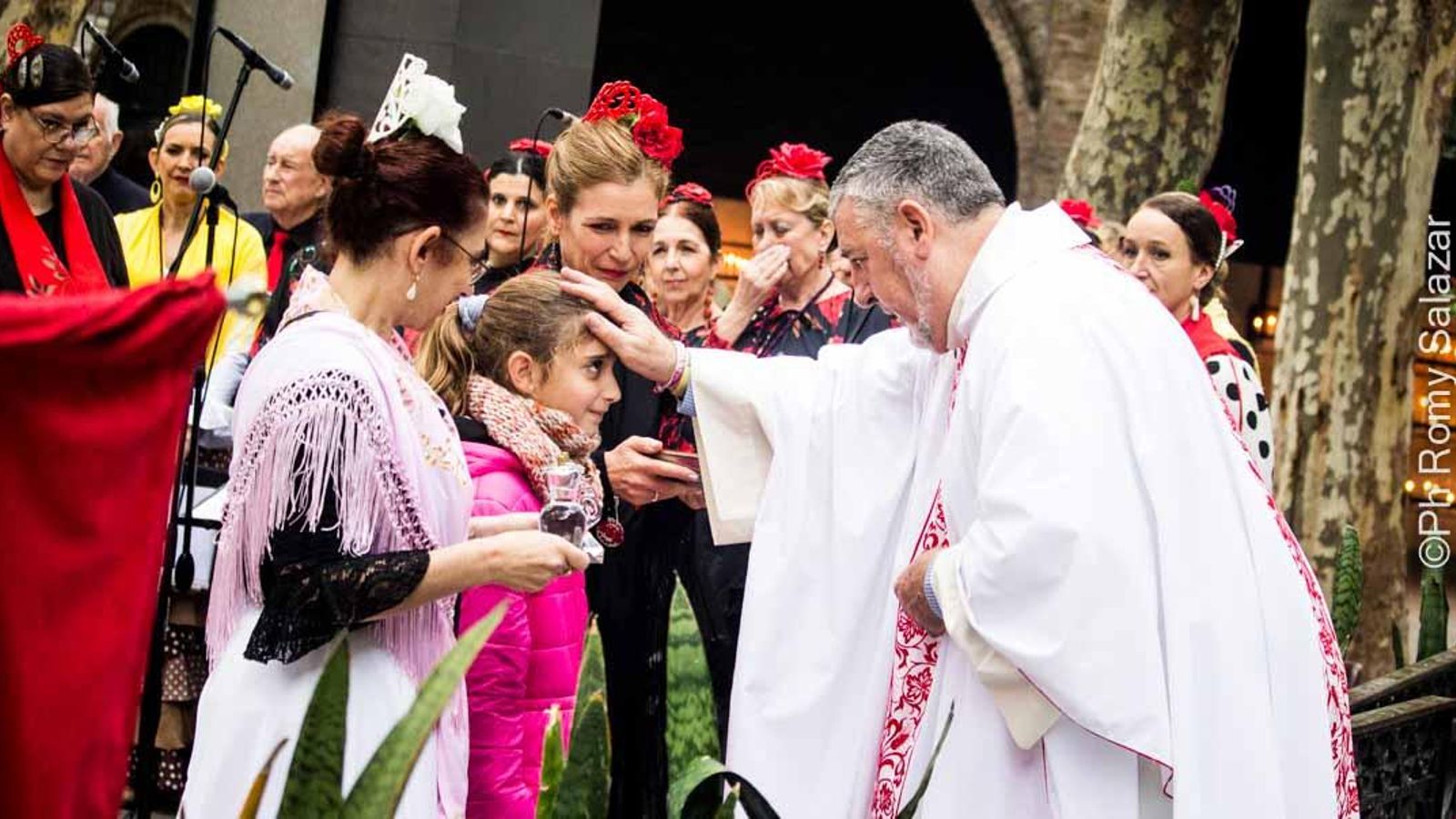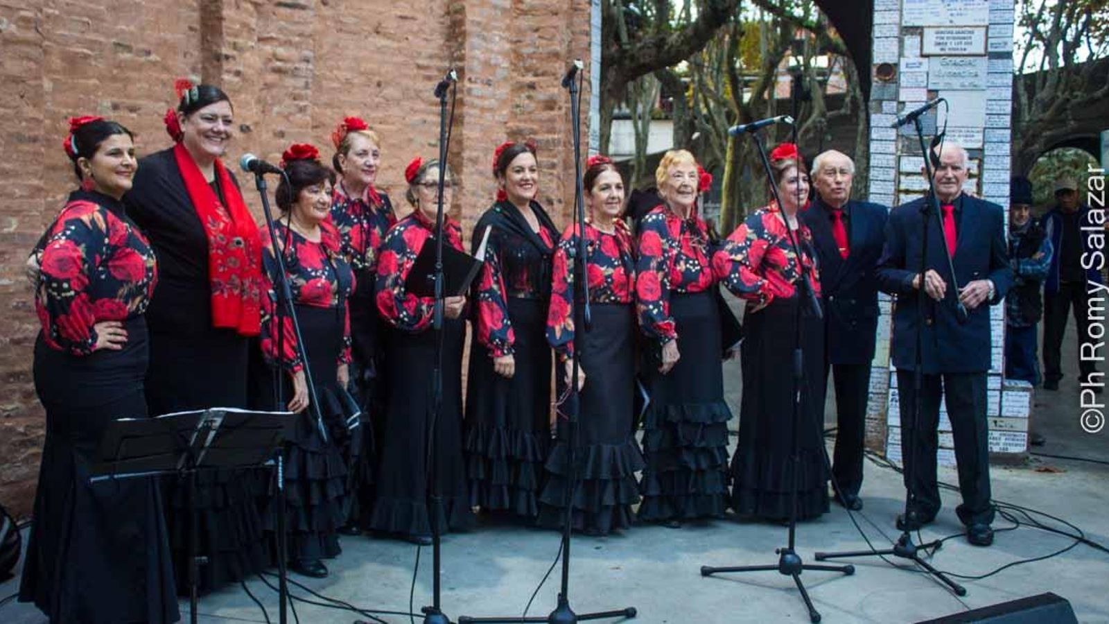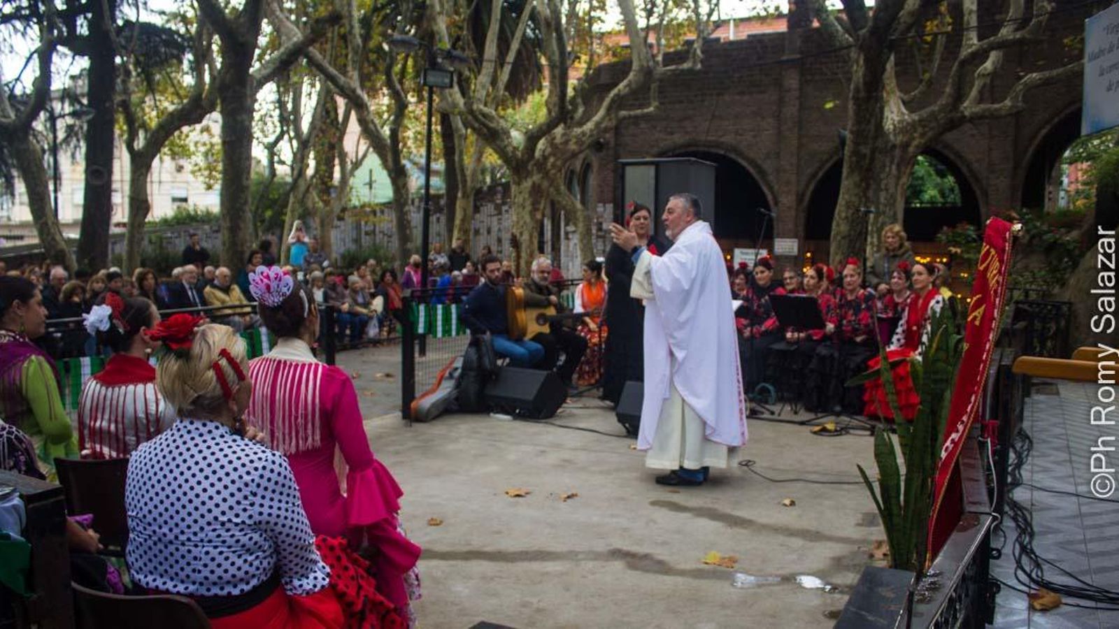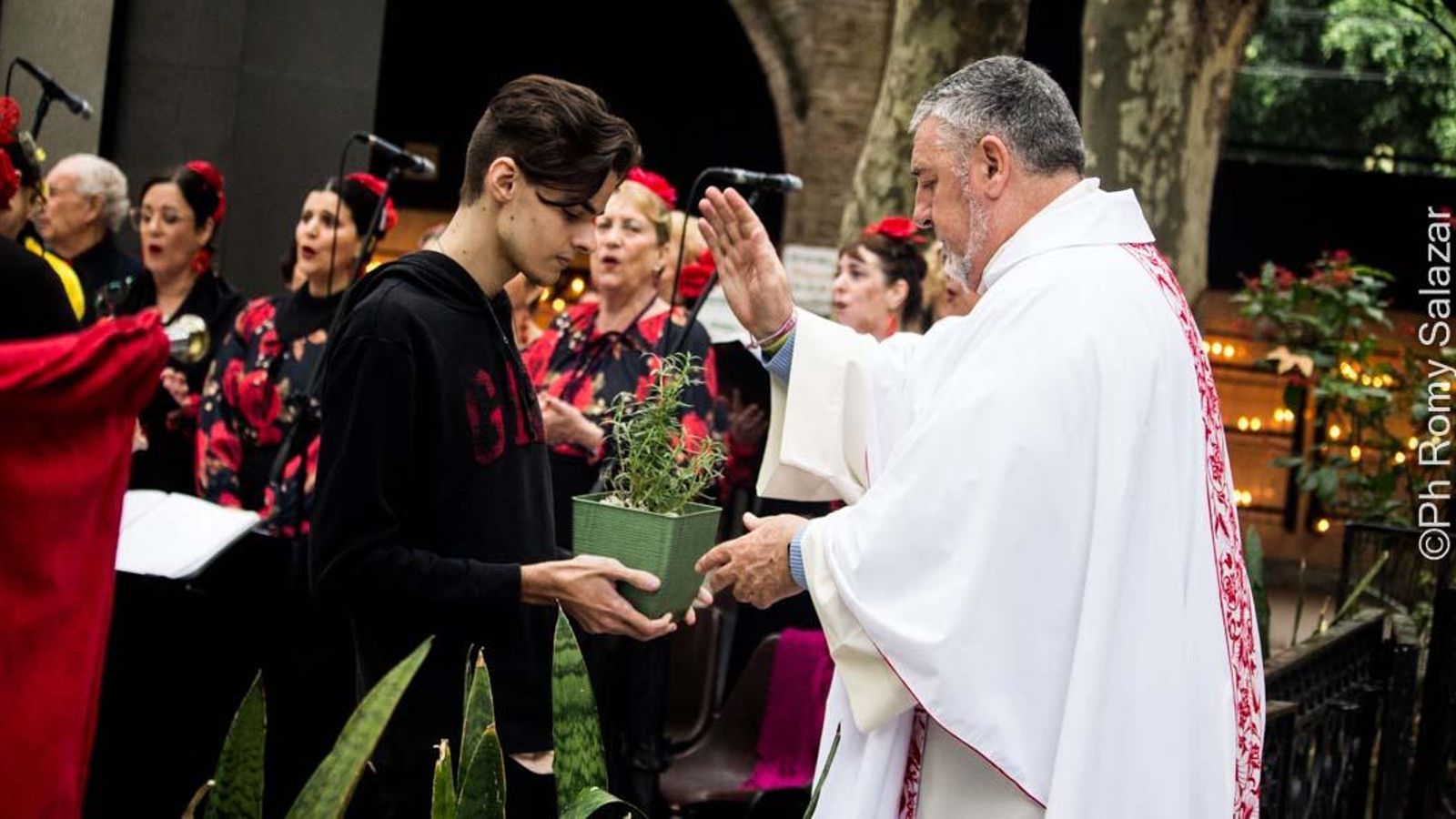 El coro “Luna y Candela” dirigido por Cecilia Narvarte, se ubicó a un lado del altar y del otro lado, miembros del cuerpo de baile “Luna Rociera” dirigido por Yanina Martínez.