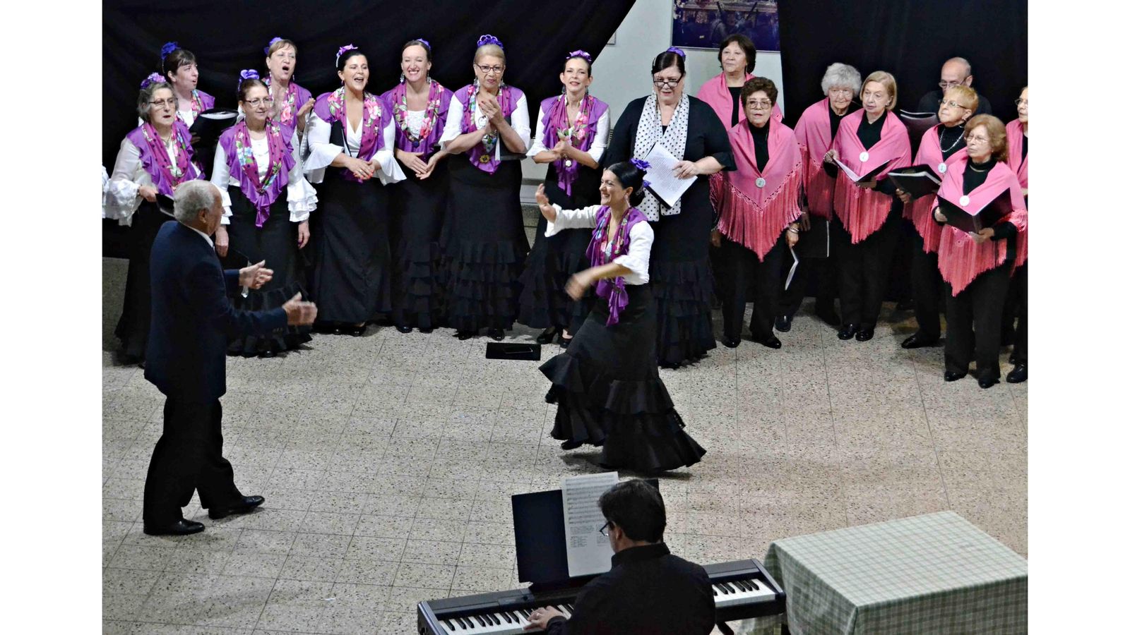 Al finalizar la presentación de los coros participantes, todos se unieron para cantar “Qué viva España” acompañados por palmas y castañuelas. El vicepresidente, Miguel Simón Guerrero y la directora del ballet del Cecaba, Yanina Martínez, salieron a bailar el tan conocido pasodoble como un excelente fin de fiesta.