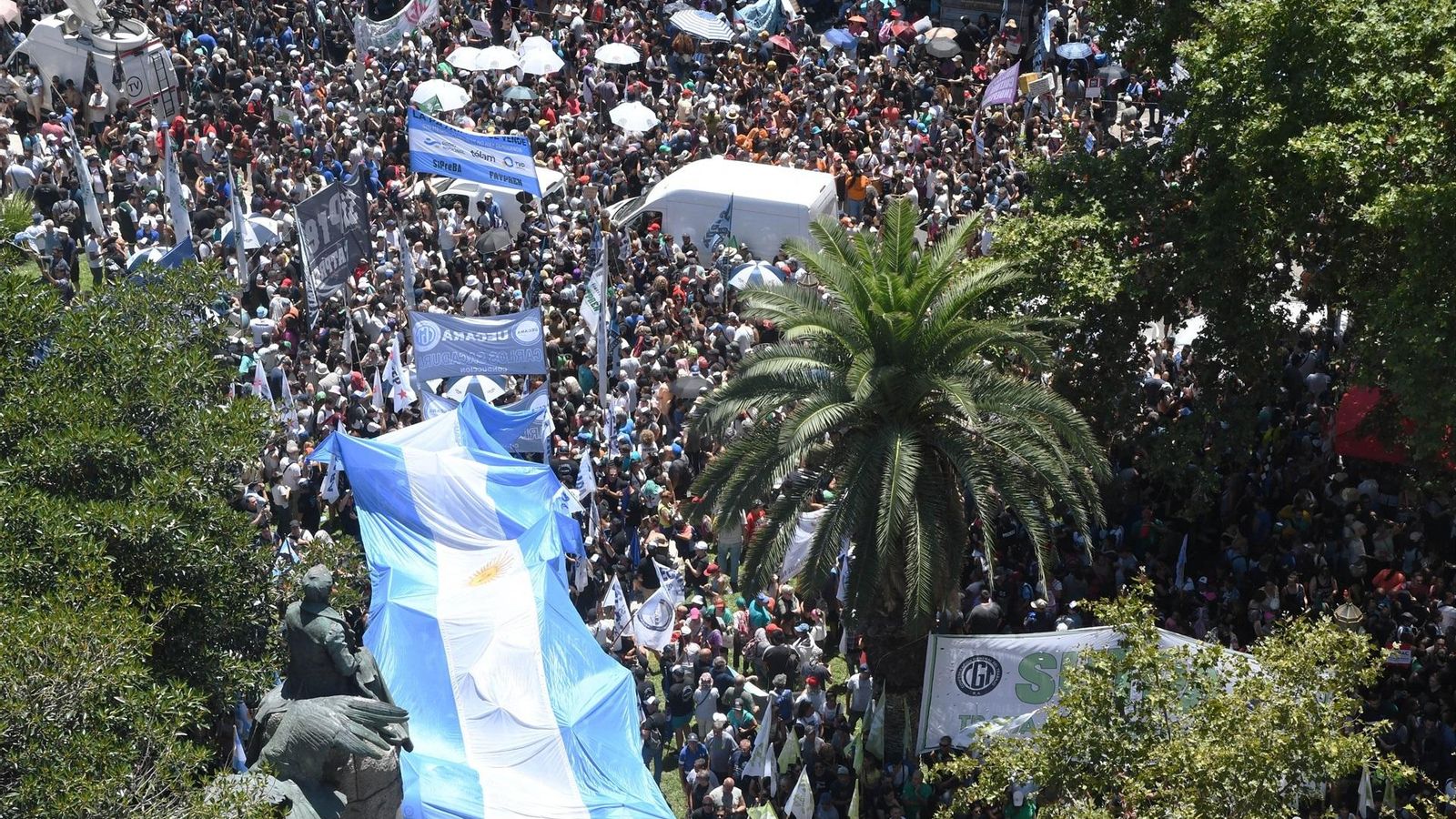 Los principales sindicatos del país han salido a las calles para manifestarse en contra el DNU, por el que se eliminan numerosas leyes y normas para desregular la economía y permitir la privatización de empresas públicas, y de la ley ómnibus, impulsados por el presidente, Javier Milei.