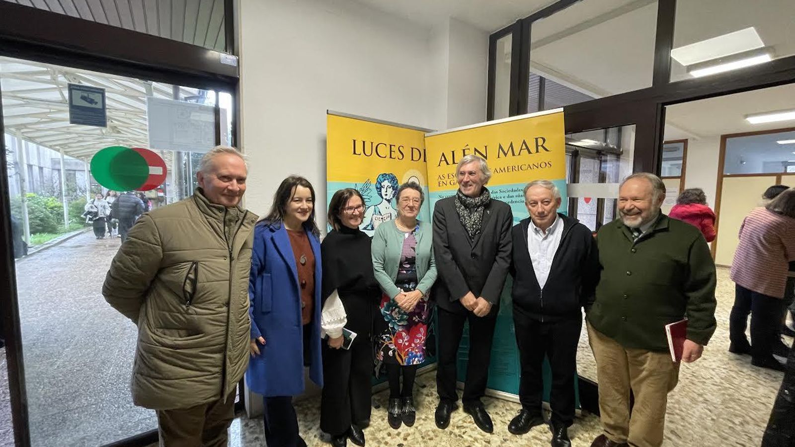El acto inaugural de la exposición se celebró con la presencia de la presidenta del Consello da Cultura Galega, Rosario Álvarez, la decana de la Facultad, Mar Lorenzo, y el comisario de la misma, Vicente Peña Saavedra. Tras la apertura oficial, el Dr. Peña pronunció una conferencia en el salón de actos del centro, bajo el título: "Luces de Alén Mar para a Galicia rural. Unha experiencia comunitaria de educación popular", a la que concurrió gran parte del profesorado y alumnado del establecimiento académico, junto a numerosos invitados. La institución anfitriona publicó el texto de la intervención, acompañado de un amplio repertorio de testimonios de época sobre las sociedades gallegas de instrucción y las escuelas de los emigrantes, así como una selecta colección de grabados y fotografías relacionados con la temática abordada por el conferenciante.