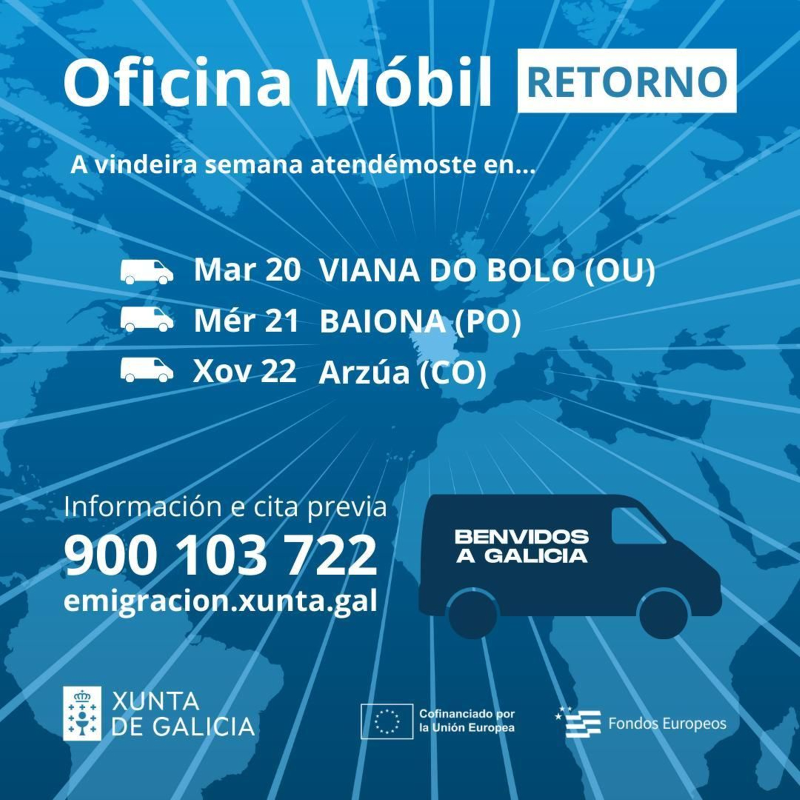 La Oficina Móvil de Retorno se acerca esta semana a Viana do Bolo, Baiona y Arzúa